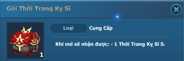 + Bảo Hạp Thời Trang Bậc S Kỵ Sĩ mỗi 1 lần mở có khả năng nhận được: