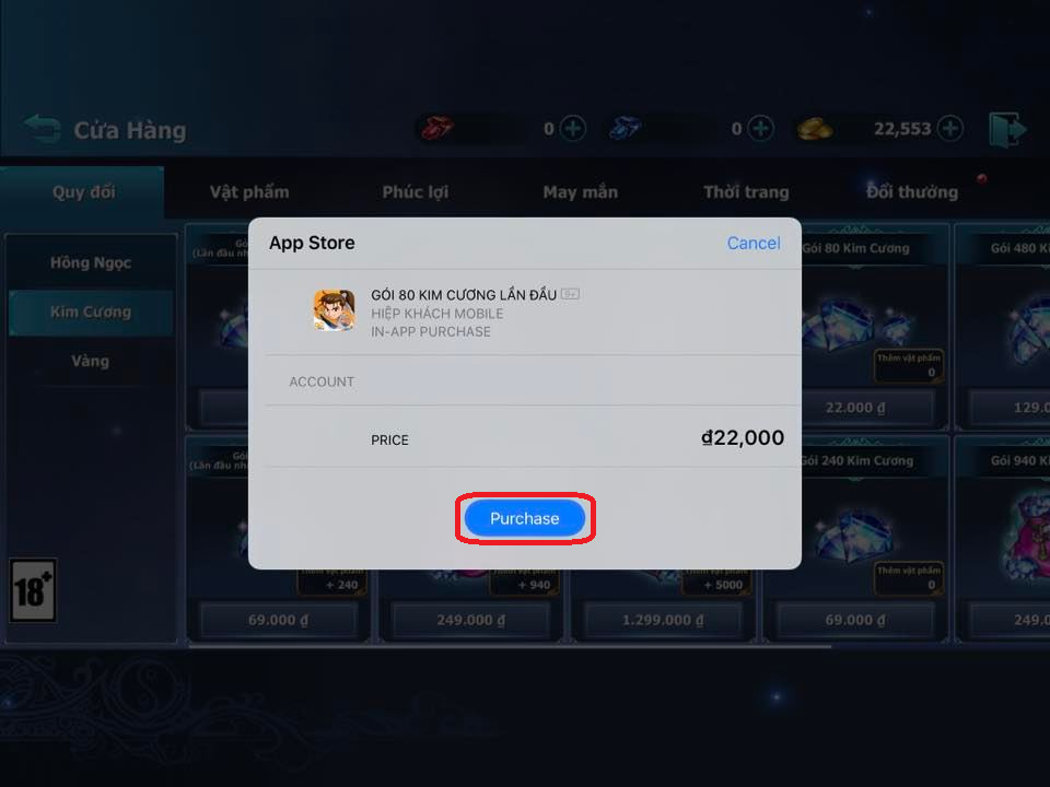 Đối với người dùng sử dụng iOS:Với Hiệp Khách sử dụng hệ điều hành IOS, có thể nạp Kim Cương theo hướng dẫn sau: