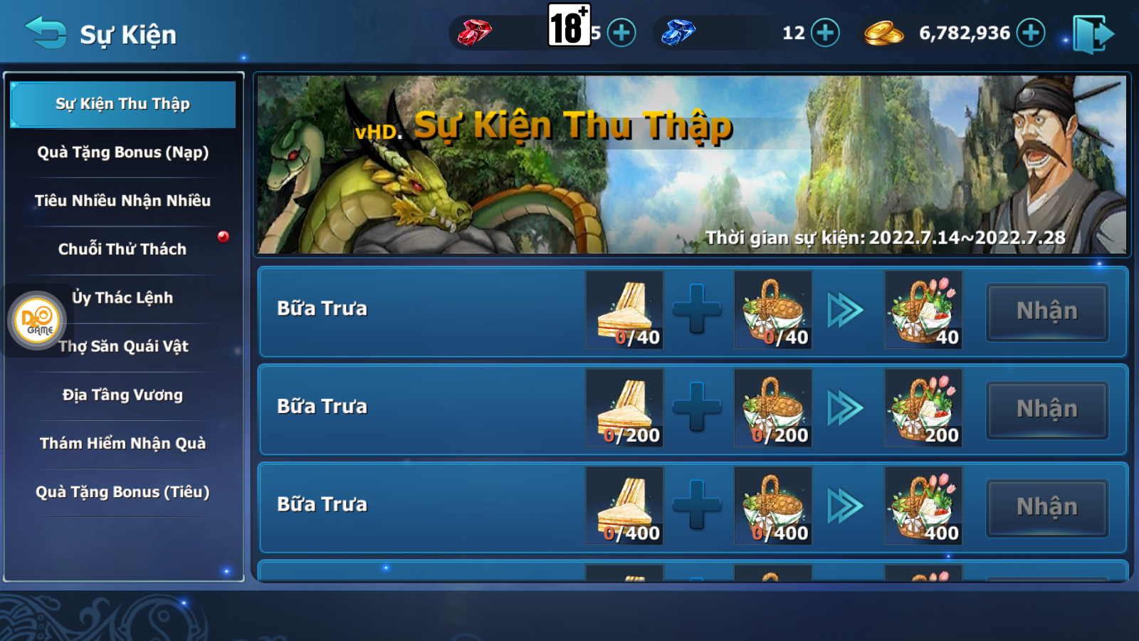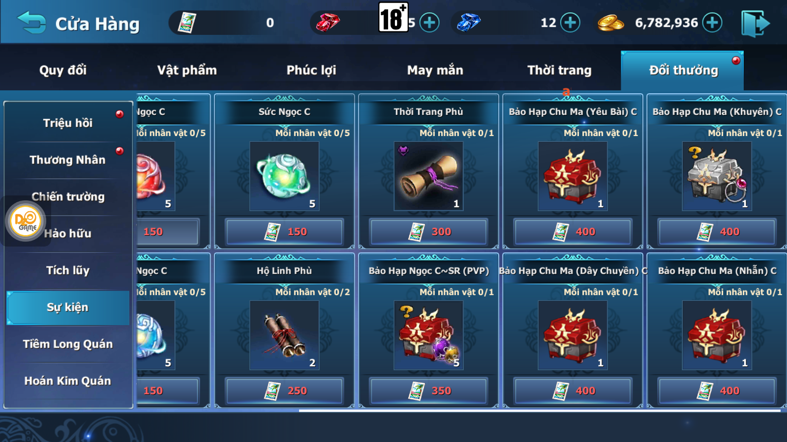 + Hiệp Khách bấm vào biểu tượng Cửa Hàng >> Đổi Thưởng >> Sự Kiện.