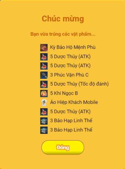 - Khi quay trúng áo thun và gấu bông chuột ù, hiệp khách vui lòng điền thông tin bằng cách ấn nút "Cập Nhật". BQT sẽ gửi quà và thông báo đến quý Hiệp Khách sau.