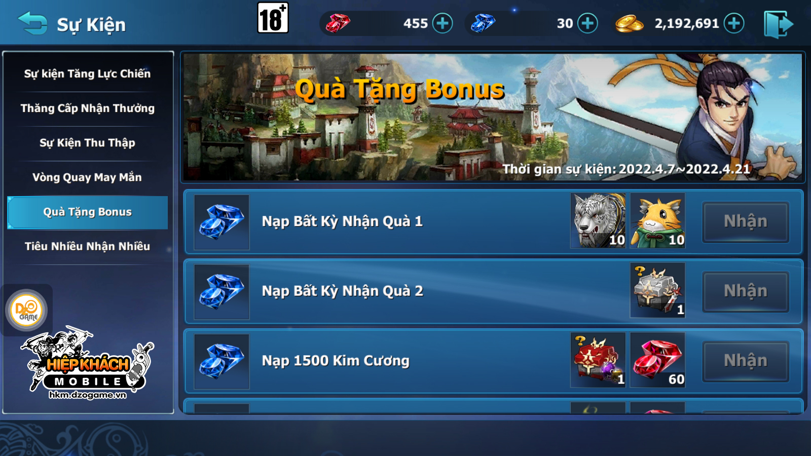 Quà Tặng Bonus 07/04/2022