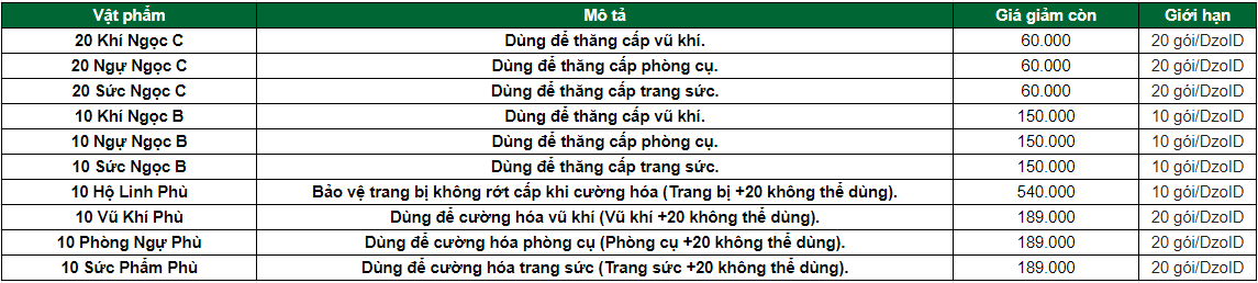 Webshop của Hiệp Khách Mobile đã quay trở lại với những gói vật phẩm hấp dẫn đi kèm theo đó là mức giá hợp lý, các Hiệp Khách còn chờ gì nữa mà không sắm ngay cho mình những vật phẩm yêu thích thôi nào.