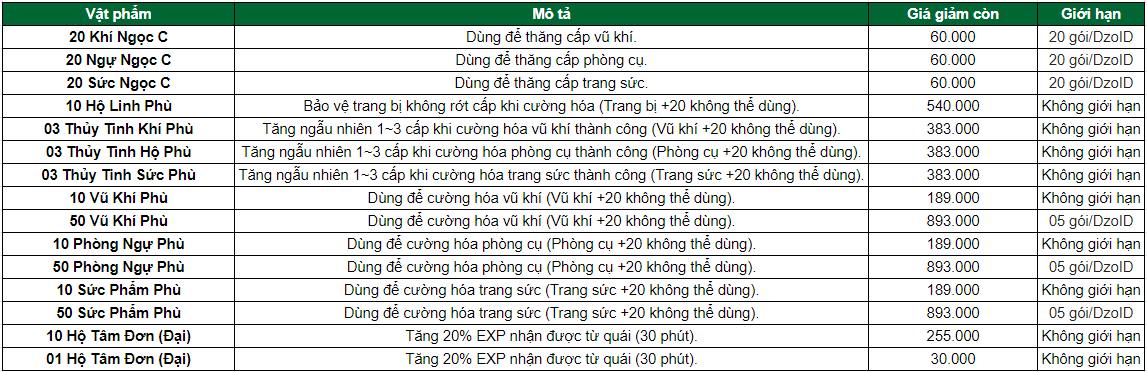 Webshop của Hiệp Khách Mobile đã quay trở lại với những gói vật phẩm hấp dẫn đi kèm theo đó là mức giá hợp lý, các Hiệp Khách còn chờ gì nữa mà không sắm ngay cho mình những vật phẩm yêu thích thôi nào.