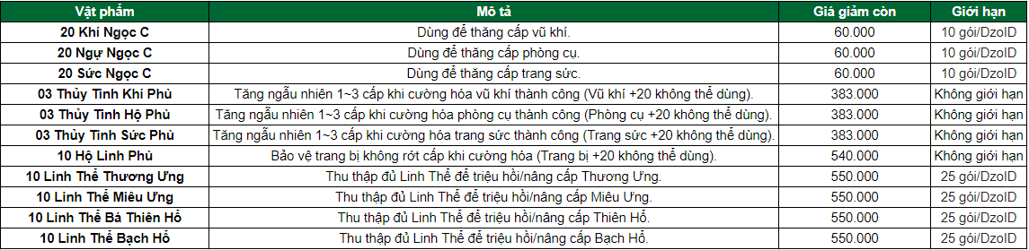 Webshop của Hiệp Khách Mobile đã quay trở lại với những gói vật phẩm hấp dẫn đi kèm theo đó là mức giá hợp lý, các Hiệp Khách còn chờ gì nữa mà không sắm ngay cho mình những vật phẩm yêu thích thôi nào.