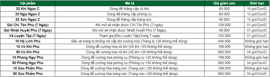 Webshop của Hiệp Khách Mobile đã quay trở lại với những gói vật phẩm hấp dẫn đi kèm theo đó là mức giá hợp lý, các Hiệp Khách còn chờ gì nữa mà không sắm ngay cho mình những vật phẩm yêu thích thôi nào.