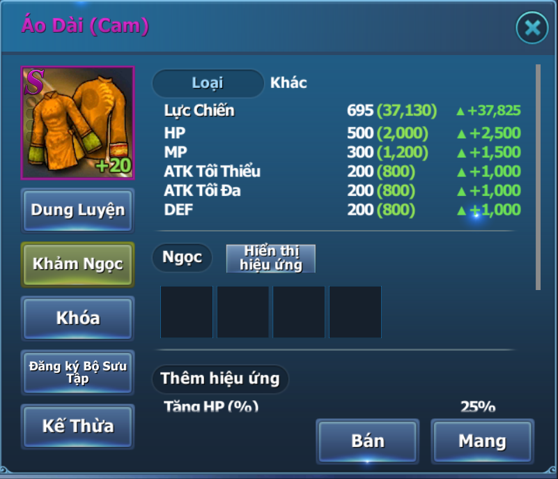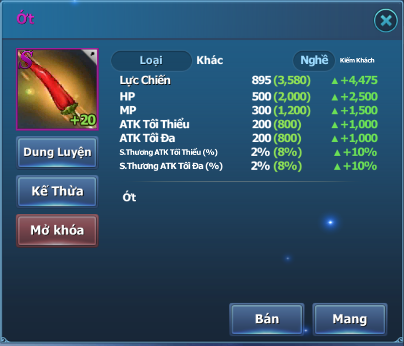 (Trang bị +20 không thể dùng).