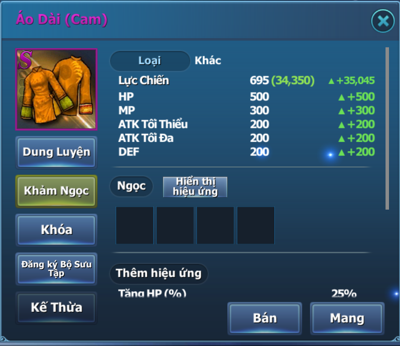 - Ngọc B~SR (ATK/DEF).