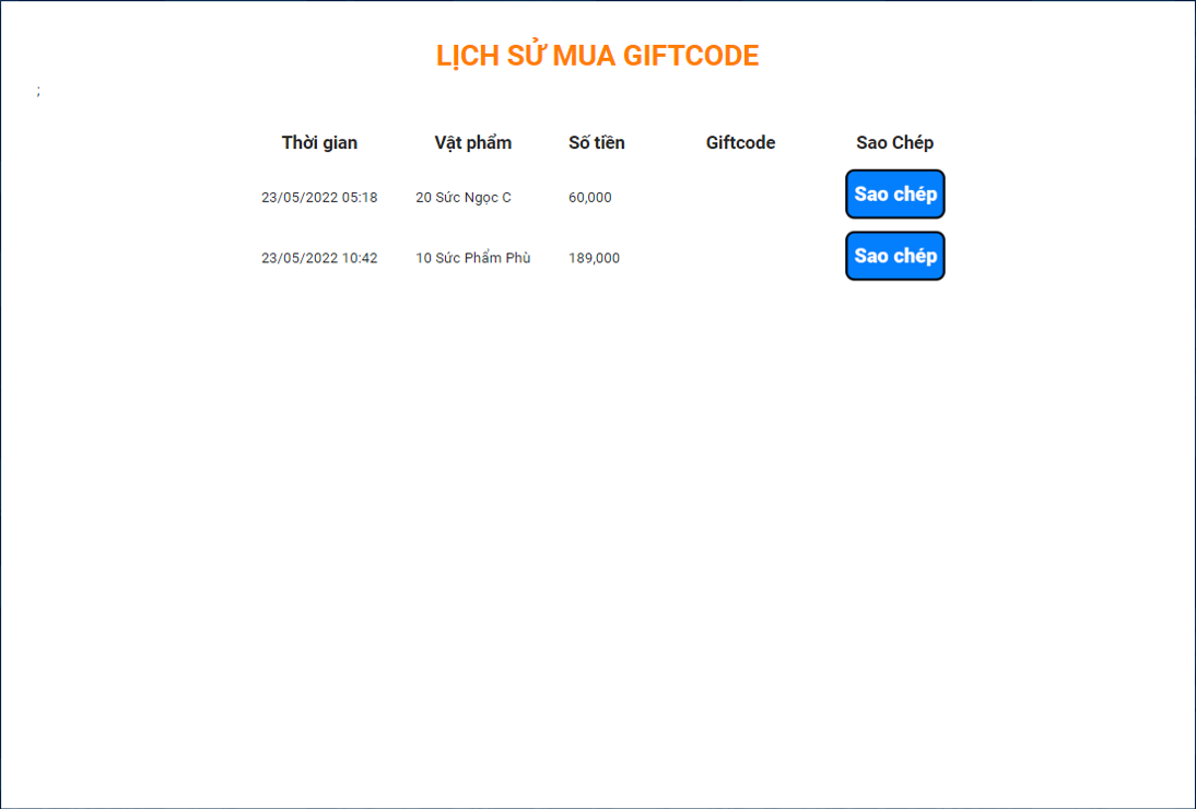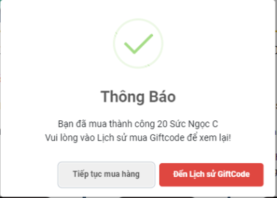 - Bước 3: Mua vật phẩm từ WebShop. Bạn muốn mua gói vật phẩm nào thì bấm nút Mua Ngay >> Đồng Ý, hệ thống sẽ tiến hành trừ tiền trong Dzoví và vật phẩm sẽ hiện ra dưới dạng Giftcode các bạn dùng để nhập vào game sẽ nhận được gói vật phẩm này.