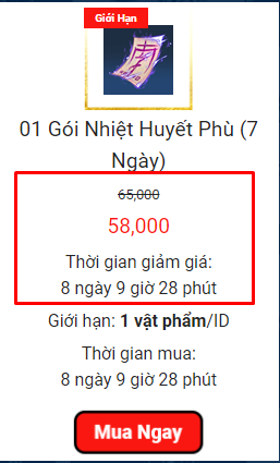 - Có một số vật phẩm và gói vật phẩm sẽ được giảm giá trong một khoảng thời gian cố định.
