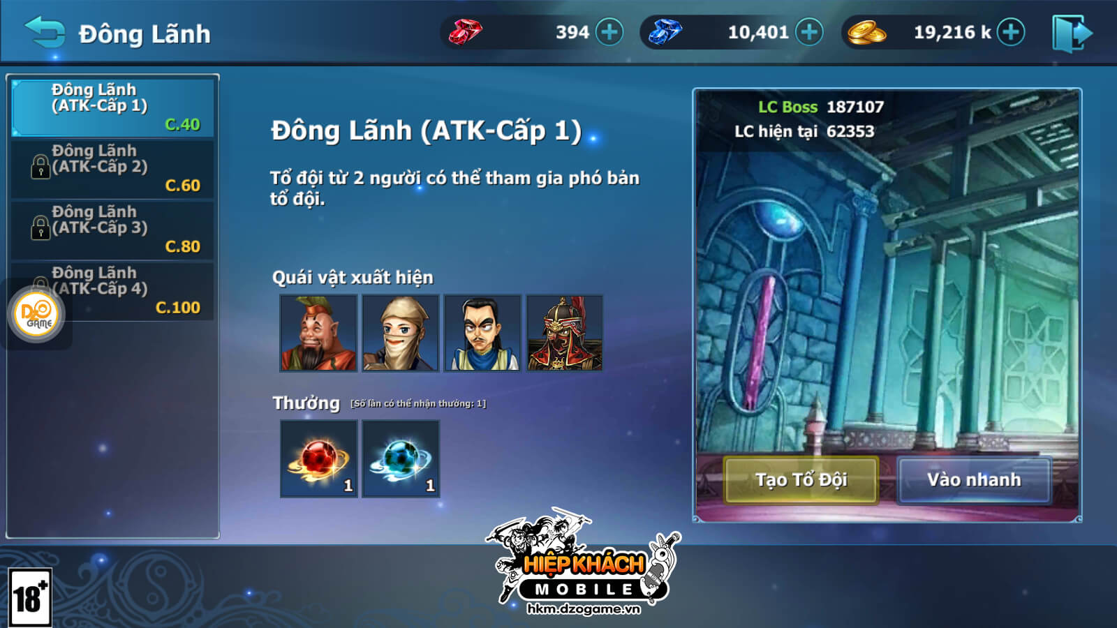 VD: Đông Lãnh 4 Lực Chiến trung bình của Boss là 656,086 thì tổ đội của Đại Hiệp cần có Lực Chiến cao hơn số đó để có thể vượt ải.