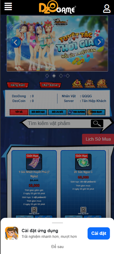 🔹Hệ thống sẽ quét và kiểm tra khi Hiệp Khách truy cập vào trang WEBSHOP, sau 24h trôi qua nếu Hiệp Khách chưa cài đặt app hệ thống sẽ hiển thị thông báo trở lại. Nếu tắt đi thì 24h sau mới hiển thị trở lại.