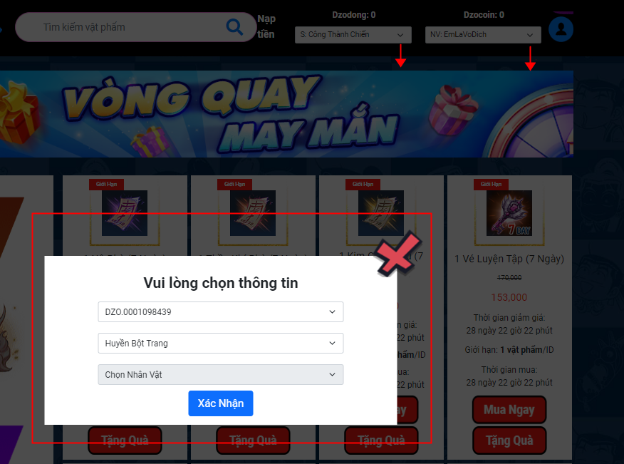 2. Chọn thông tin nhân vật cần mua hàng