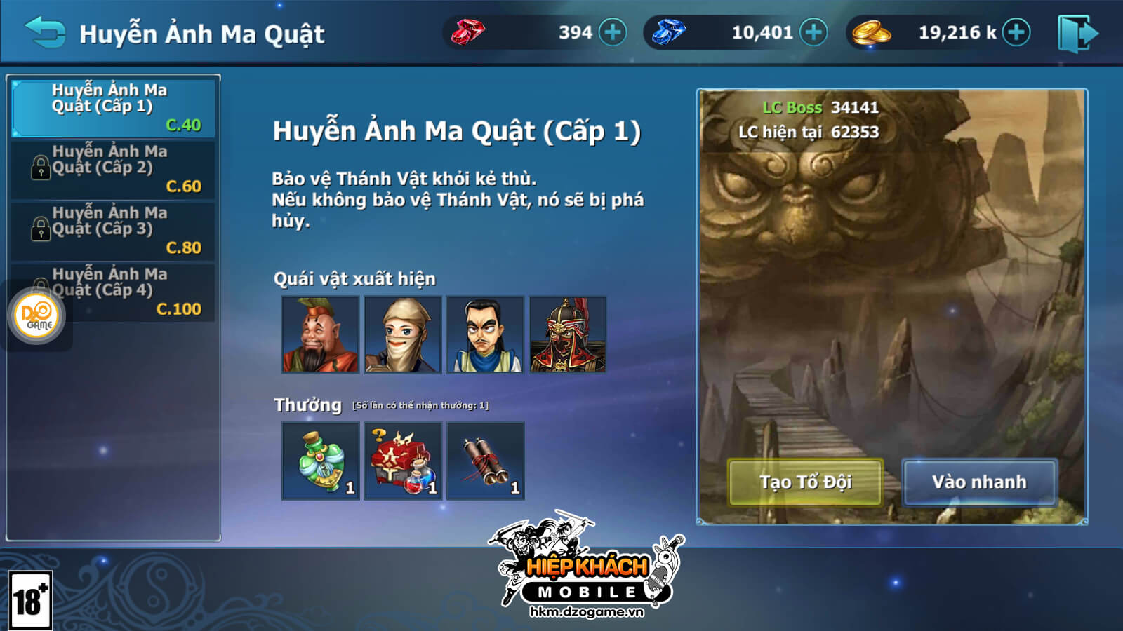 - Mỗi ngày có thể tham gia phó bản một lần.
