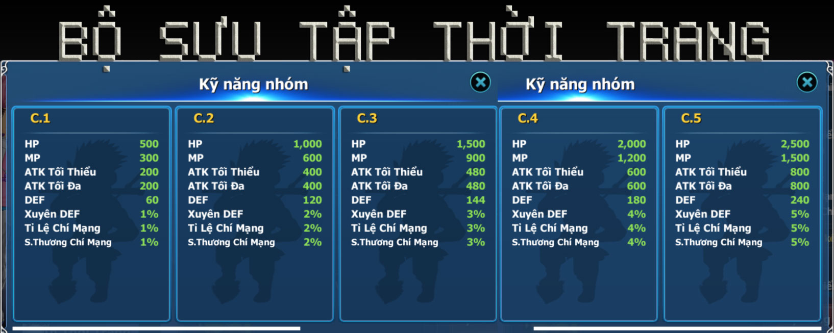 - Hiệp Khách mỗi 1 lần nạp 480 KC, Hiệp Khách sẽ được nhận gói quà tương đương lần lượt: [I], [II], [III].