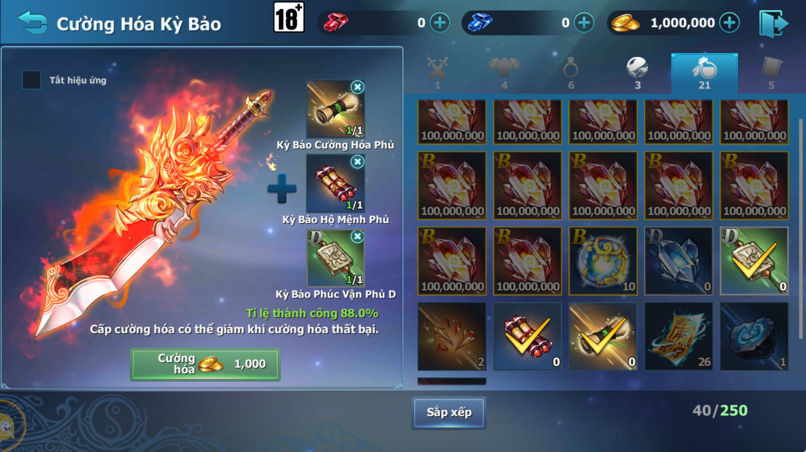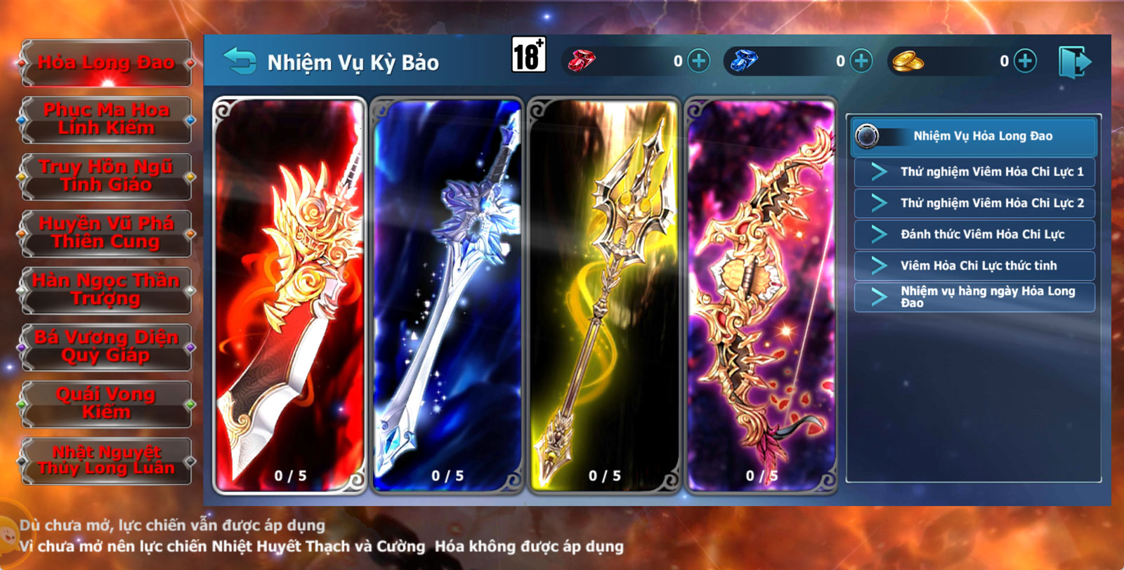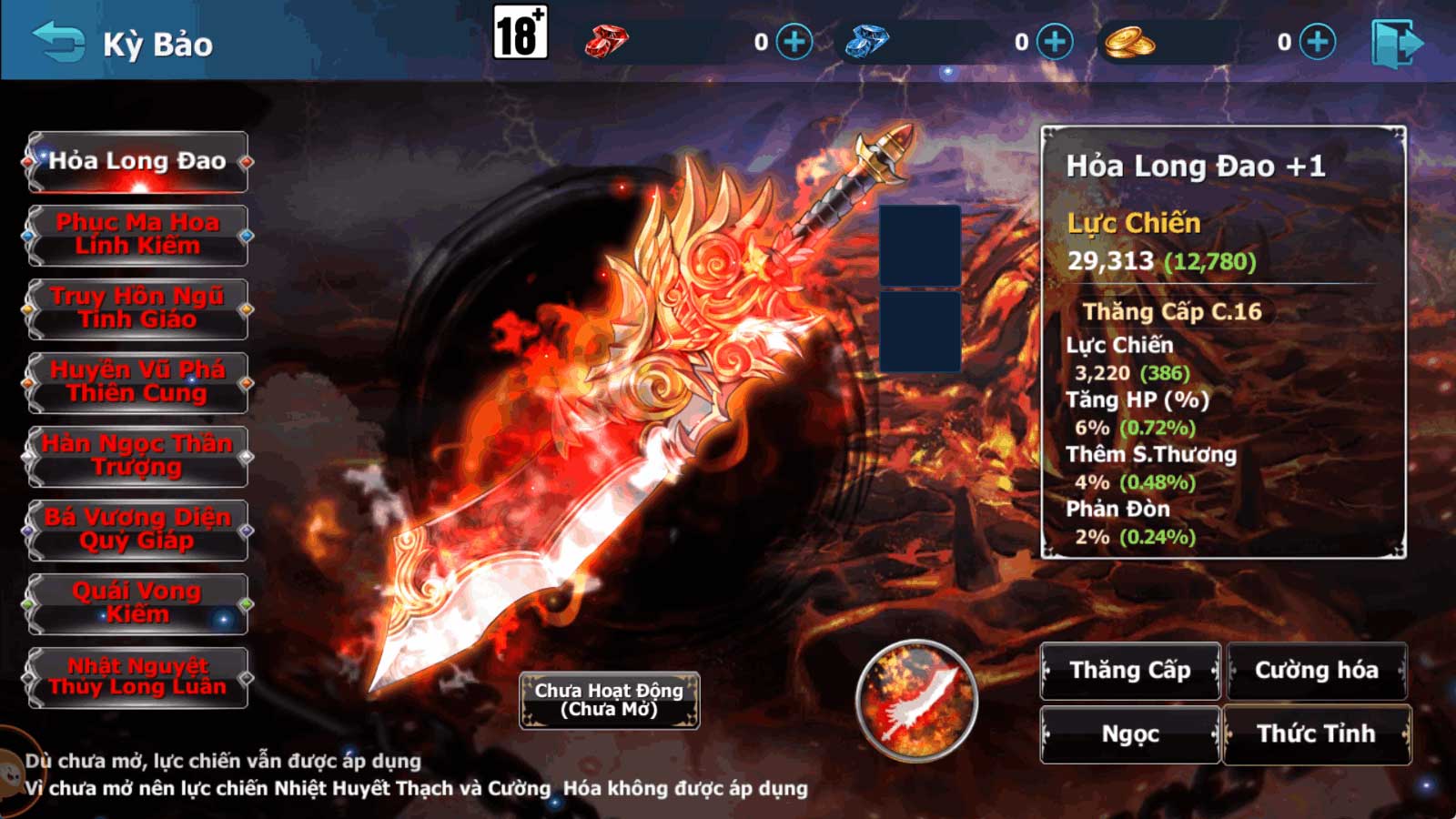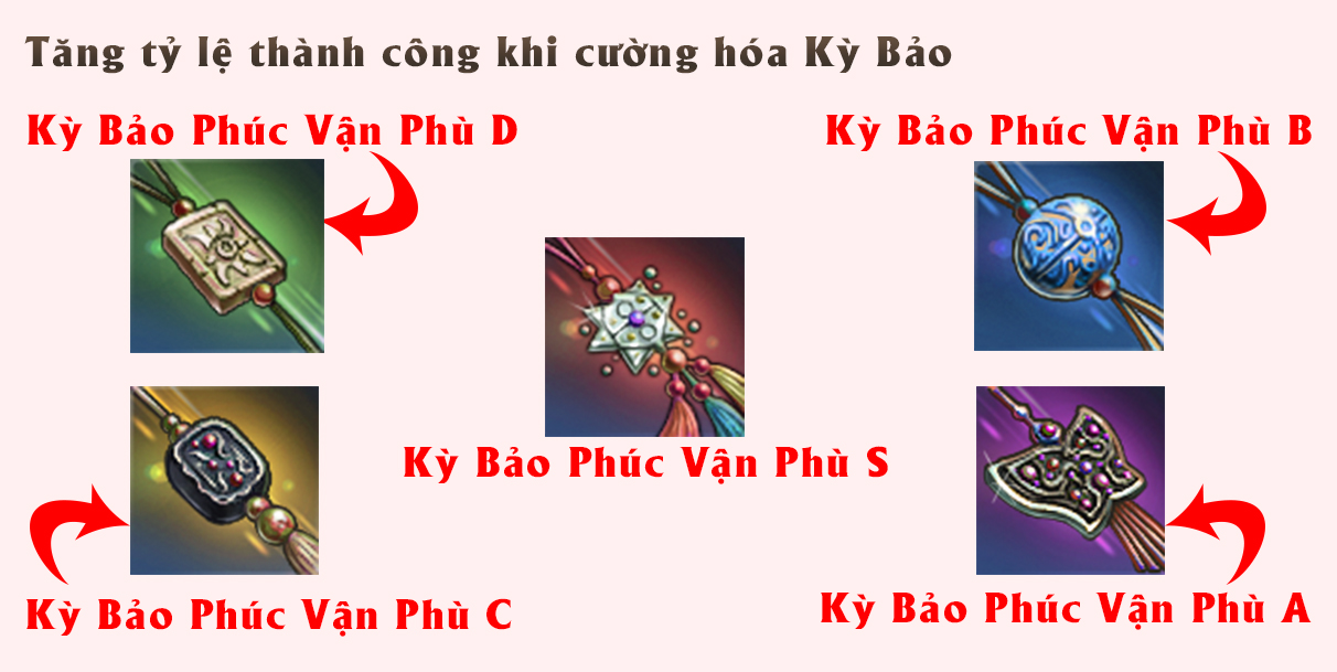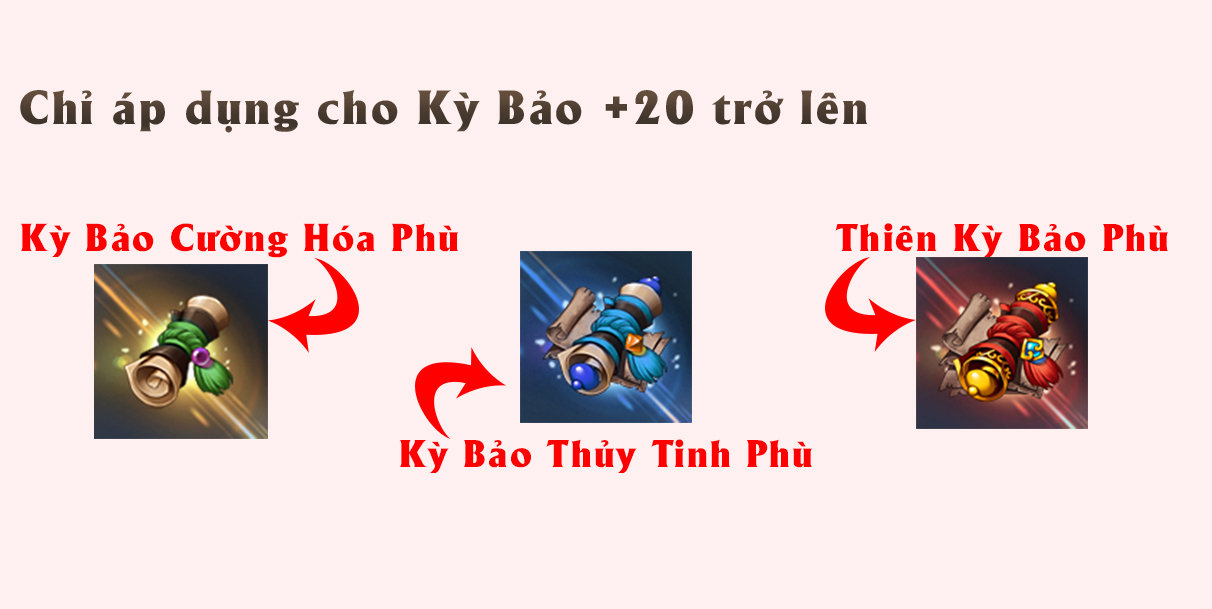 Trong KỲ BẢO sẽ có các tính năng như: thăng cấp, cường hóa, khảm ngọc và thức tỉnh.