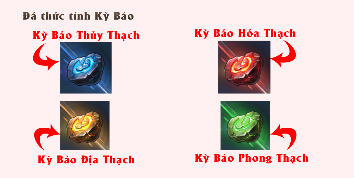 Nguyên liệu cần để Thức Tỉnh : Kỳ Bảo Hỏa Thạch, Kỳ Bảo Thủy Thạch, Kỳ Bảo Địa Thạch, Kỳ Bảo Phong Thạch