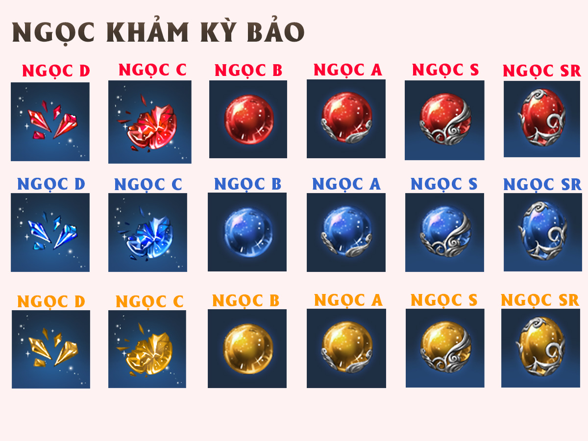 Các loại "Ngọc" Hiệp Khách có thể khảm: