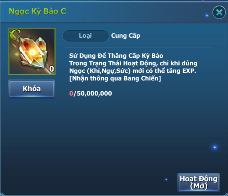 + Ngọc Kỳ Bảo C có thể nhận thông qua Bang Chiến. (Điểm cần thiết để Ngọc Kỳ Bảo C hoàn thiện: 50,000,000)