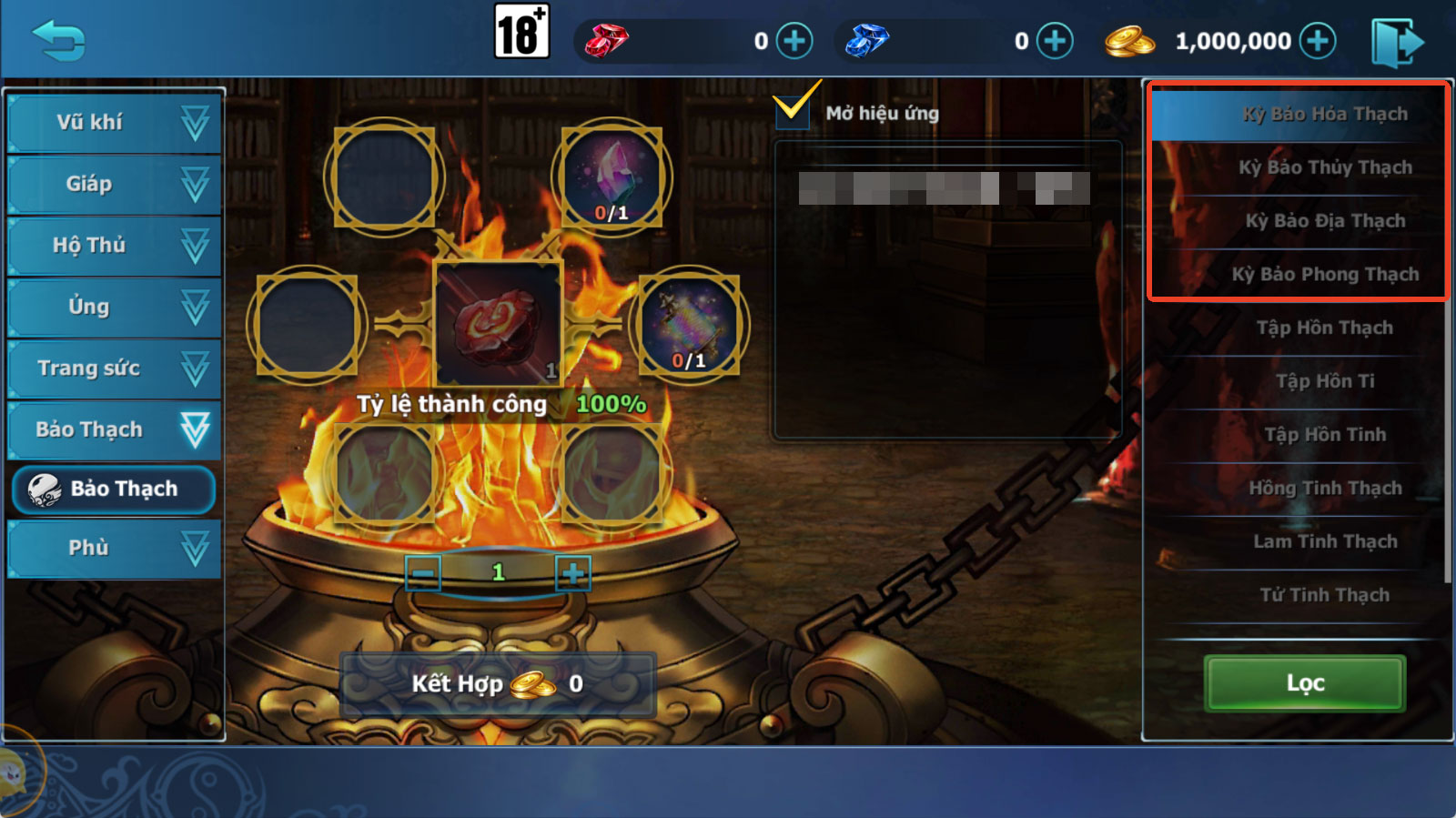 Sau khi có Mảnh Ngọc Kỳ Bảo, hãy đưa vào phần chế tạo để ghép thành Ngọc Kỳ Bảo.