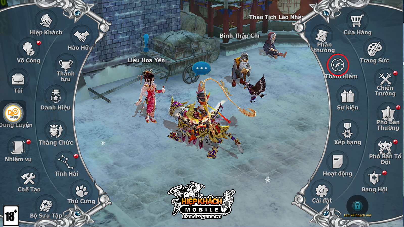 - Bấm vào nút giao diện Tổng >> chọn nút Thám Hiểm để mở giao diện.