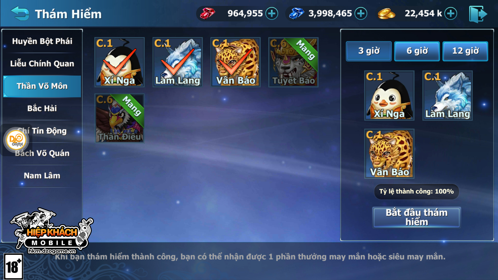 - Có 3 mốc thời gian Thám Hiểm là: 3, 6, 12 giờ.
