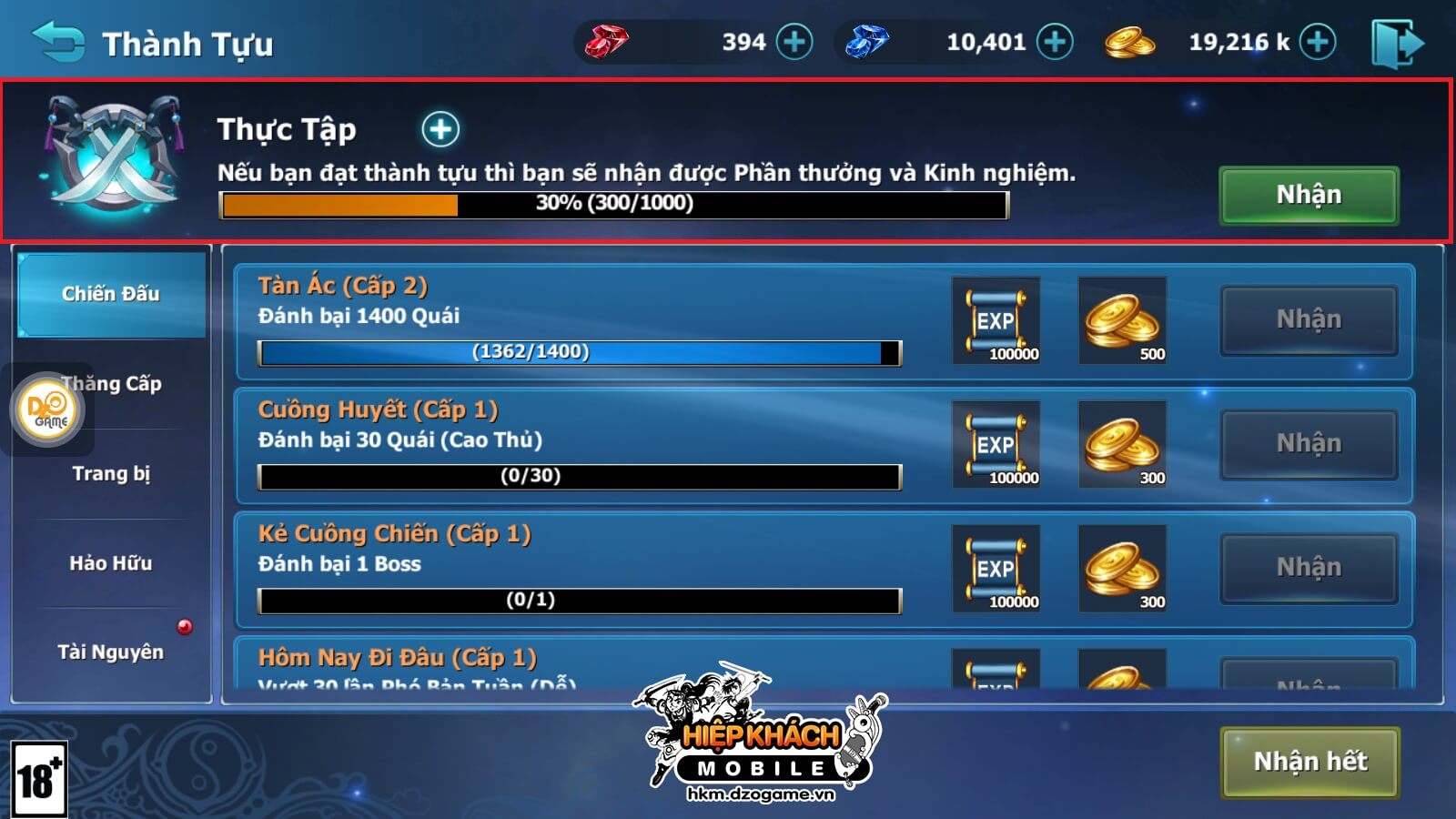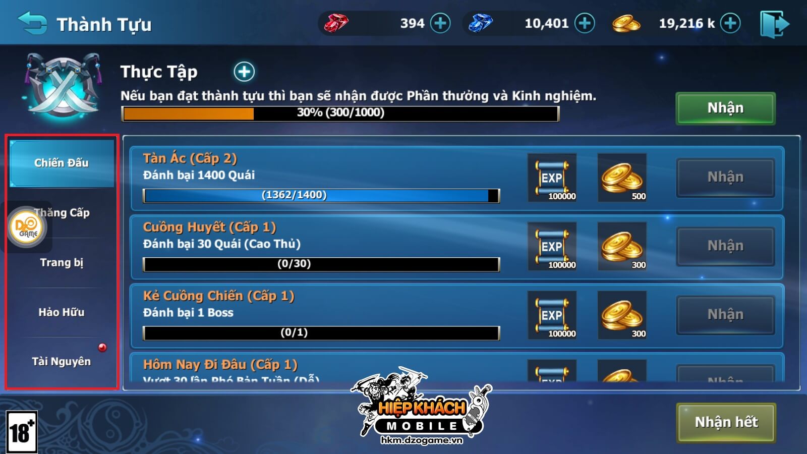 - Khi Hiệp Khách hoàn thành một yêu cầu cụ thể do hệ thống đưa ra thì sẽ đạt được Thành Tựu tương ứng trong Hiệp Khách Mobile.