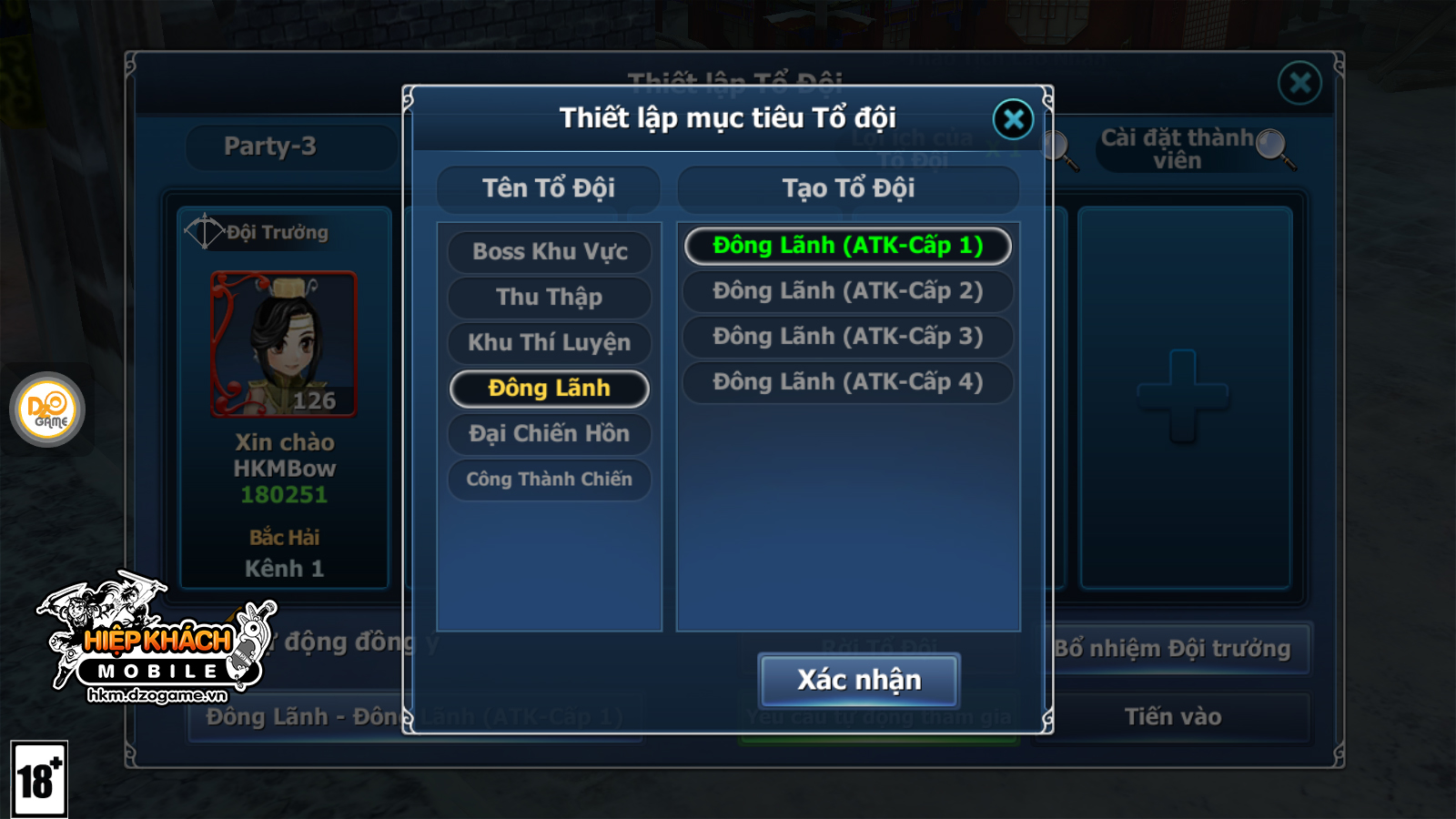 - Quản lý Tổ Đội (dùng để lựa chọn phó bản nếu có).